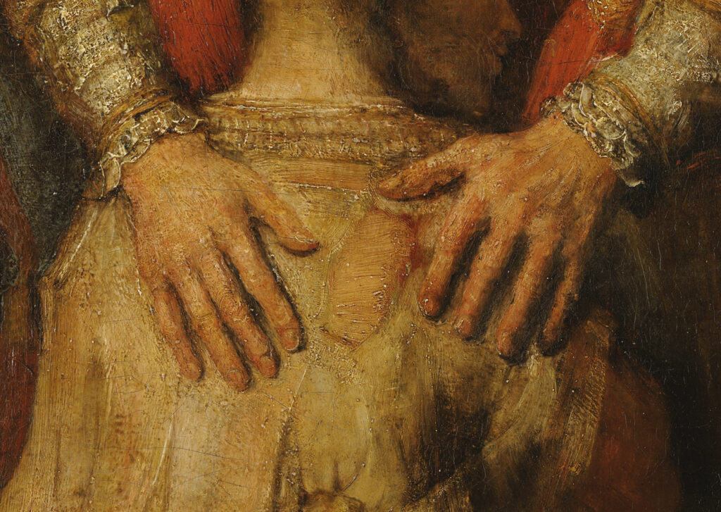 レンブラント・ファン・レインが描いた最大の見どころは、父が息子を抱きしめるこの瞬間です。