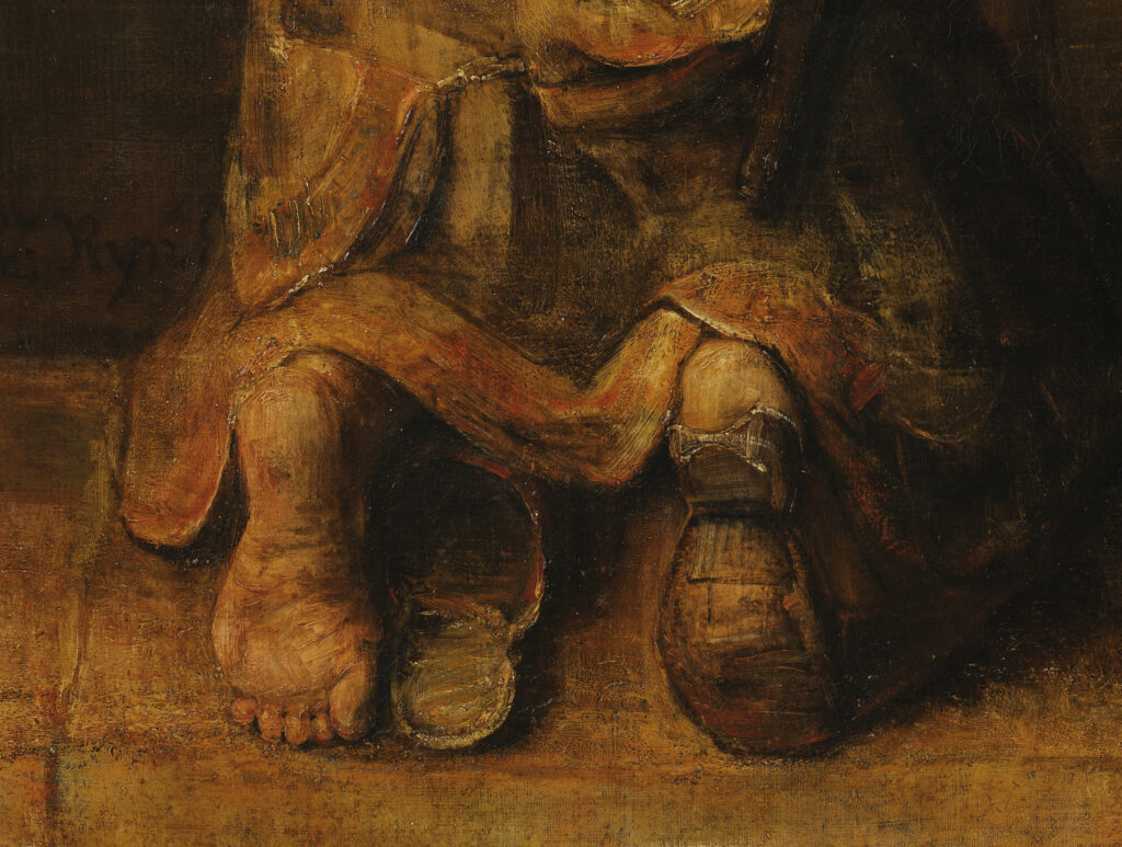レンブラント特有の光と闇の対比(キアロスクーロ)は、この作品でも極めて効果的に使われています。