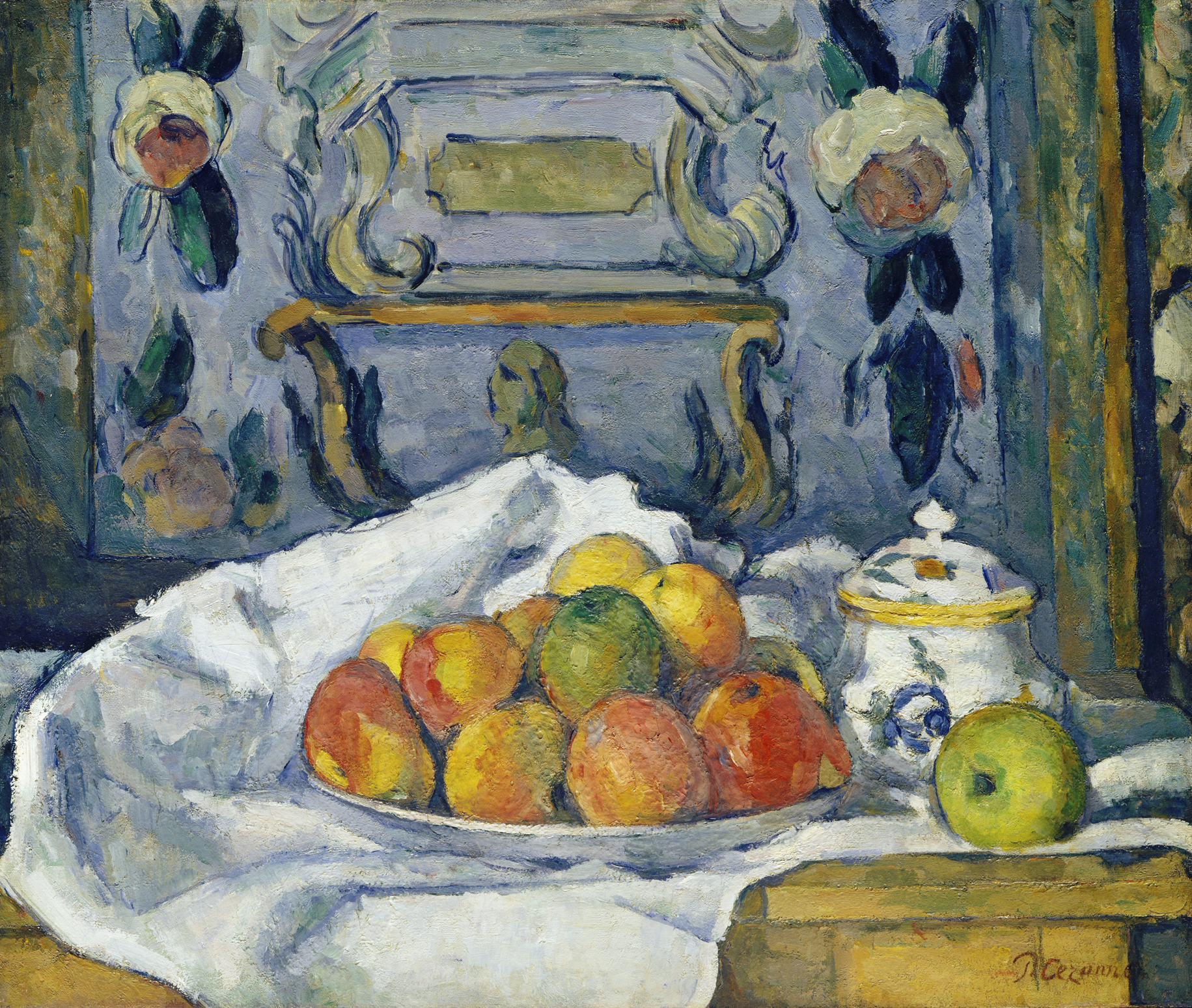 特徴: まだリンゴを主役にする前の作品。この時期のセザンヌは暗い色調で、対象を物質として重厚に描いていた。