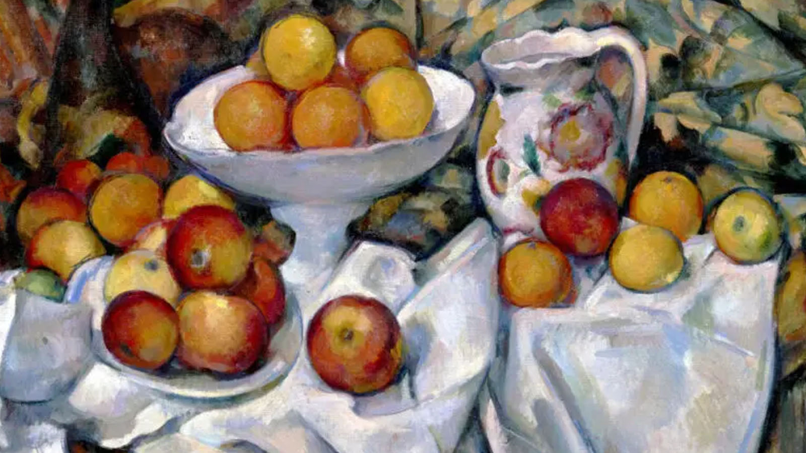 「リンゴとオレンジのある静物」はセザンヌの数ある静物画の中で最高傑作と称されることも珍しくありません。構図、色彩、形態、マチエール、さまざまな要素が絵の中で巧みに融合し、関係を保ちながら、通常の静物画にはない驚くほどの情報量を伝えてくれるのです。