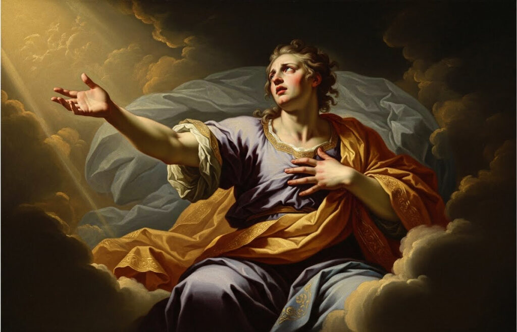 セメレは「本当の姿を見せて」と願う。神聖な誓いを覆すことのできないジュピターは悲痛の想いでそのとおりにする。