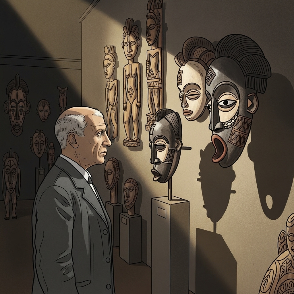 ピカソにとってアフリカの部族彫刻は、単なる興味本位の収集品ではなく、自身の芸術を一変させる強烈なインスピレーションの源となったのでした。